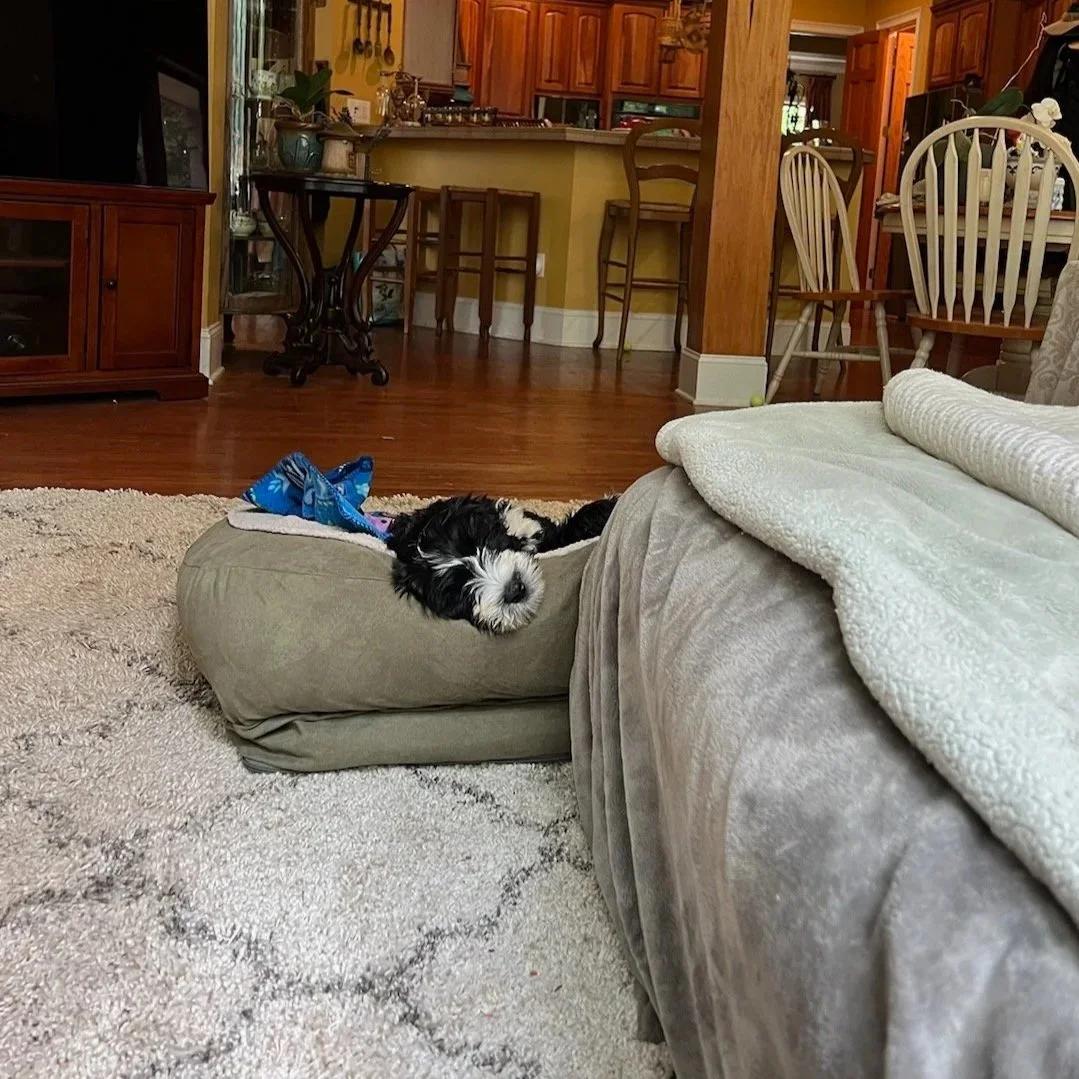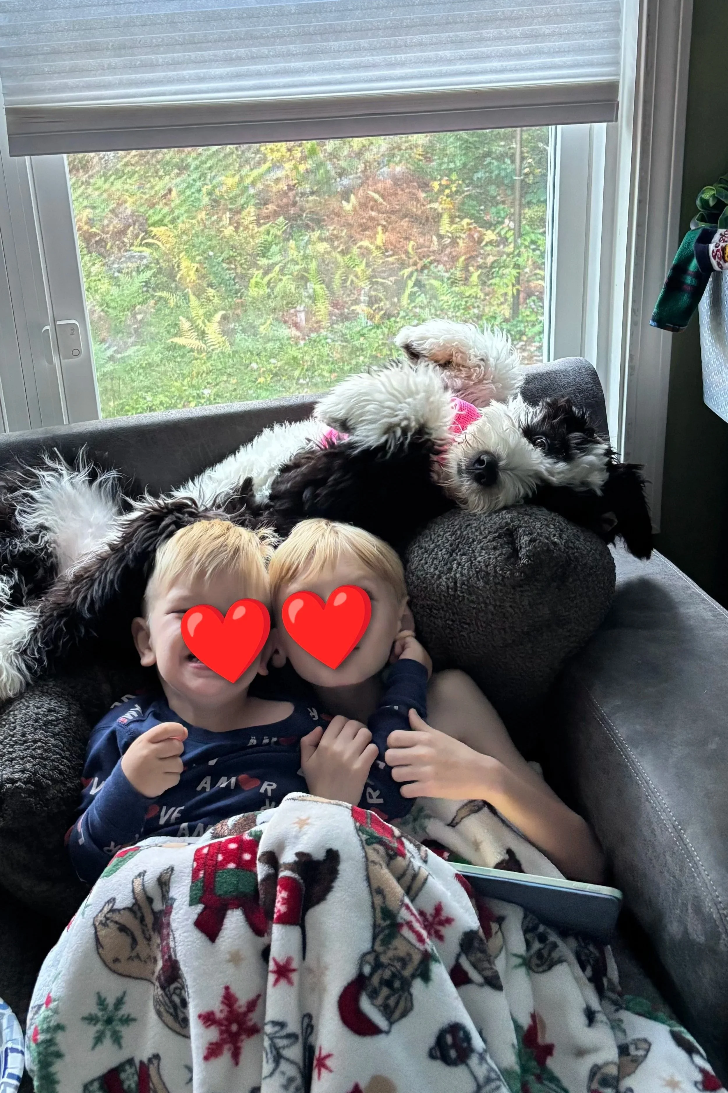 Tulah is doing wonderful, she has been such a joy and an easy addition to our family! Potty training was a breeze and despite the occasional sock victim :) she does such a good job being a well behaved pup. She is the highlight of our daughter’s days and is so incredibly tolerant of their little hands. We love her!