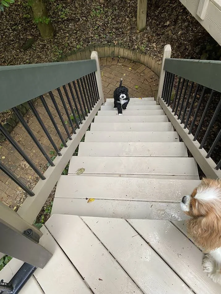 Bentley (aka Jack) learned to walk up and down stairs. Still doing well. Weighs 12.5 pounds now.