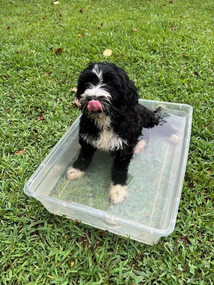Definitely can tell she's a water dog though! Always in her little pool or trying to go in the kids one