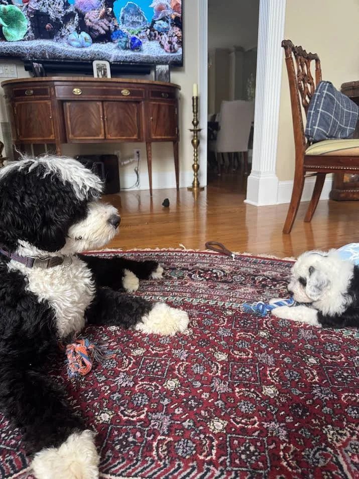 Rover and Deacon have been best friends since the day they’ve met and we couldn’t be happier! They know how to sit, shake, speak, high-five and occasionally roll over. They love swimming, long walks, and stealing socks! They are very funny and loving dogs and we couldn’t have gotten luckier. Thank you so much